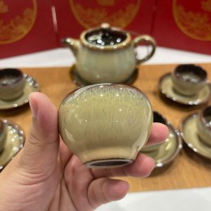 Bộ Ấm Chén Bát Tràng Men Hỏa Biến Hổ Phách Tinh Vân là sự hòa quyện tinh tế giữa nghệ thuật thủ công truyền thống và nét đẹp thanh tao của văn hóa thưởng trà Việt. Được tạo tác bởi nghệ nhân làng gốm Bát Tràng, bộ sản phẩm mang sắc men hổ phách óng ánh, biến đổi độc đáo dưới ánh sáng – tượng trưng cho sự an nhiên và thịnh vượng.